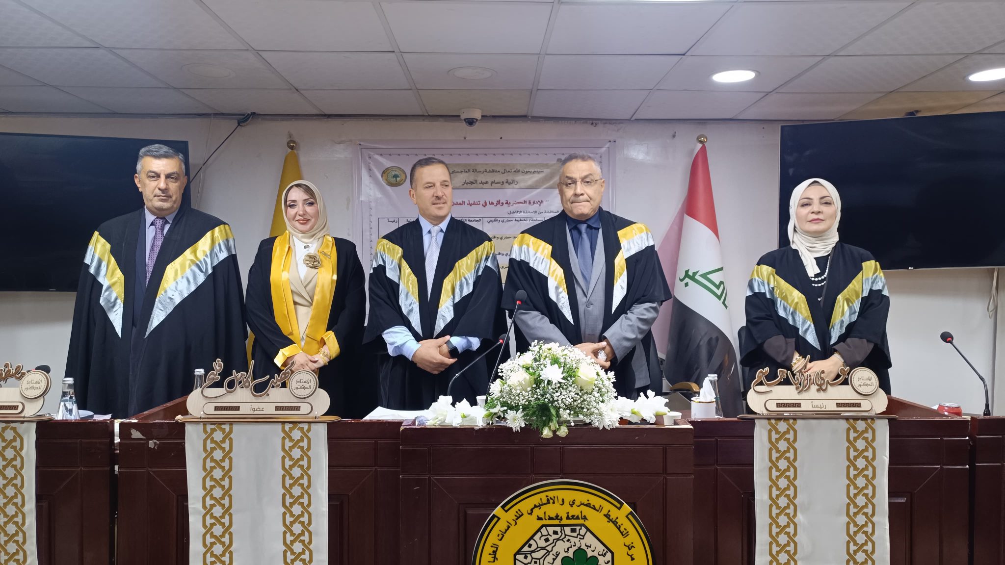 The Center of Urban and Regional Planning for Postgraduate Studies at the University of Baghdad discussed the master’s thesis titled “Urban Management and Its Impact on the Implementation of New Cities” by student Rania Wissam Abdul-Jabbar, supervised by Professor Dr. Mustafa Abdul-Jalil Ibrahim. The thesis aimed to utilize all the development potential and economic and natural factors of the city’s location and environment, and employ them while developing an integrated standard administrative planning methodology for managing new cities.