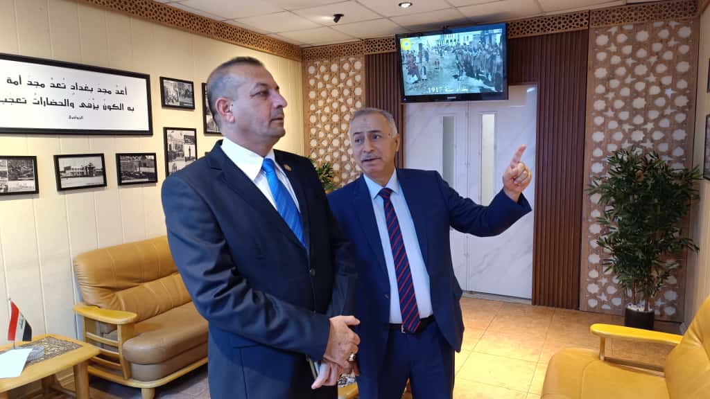 The Dean of the Center of Urban and Regional Planning for Postgraduate Studies at the University of Baghdad, Professor Dr. Kareem Hassan Alwan, received the President of the Middle Technical University, Professor Dr. Wadah Amer Hatem. The two discussed ways to enhance cooperation between their institutions, as well as scientific advancements and the adoption of sustainability in all aspects of life. Dr. Alwan provided a detailed explanation of the Center’s role and its scientific output, particularly given that planning has become fundamental to launching and sustaining any project according to established scientific standards.