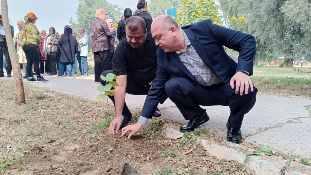 The Center of Urban and Regional Planning for Postgraduate Studies at the University of Baghdad launched a voluntary autumn tree-planting campaign under the slogan “University of Baghdad Plants for a Green Future.” The campaign was supervised by the Dean of the Center, Professor Dr. Kareem Hassan Alwan, and involved faculty, staff, and postgraduate students.